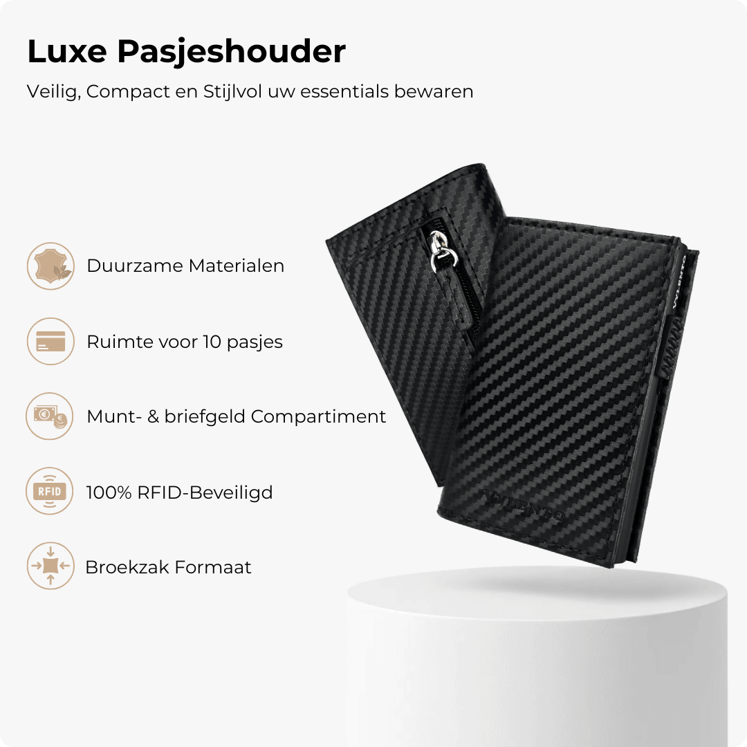 De pasjeshouder met een luxe uitstraling die geen functie tekortkomt. Tijdloos design gemaakt van premium materialen om je essentials compact, stijlvol en veilig te organiseren.
